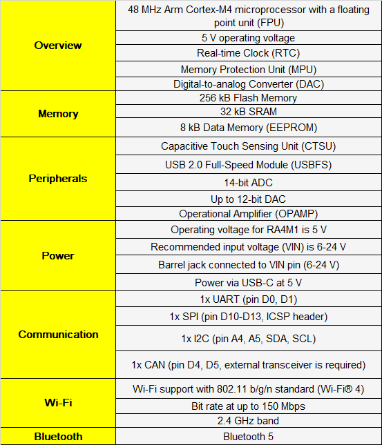 The Arduino Uno R4 WiFi board offers several notable features and specifications that make it a powerful tool for IoT development: